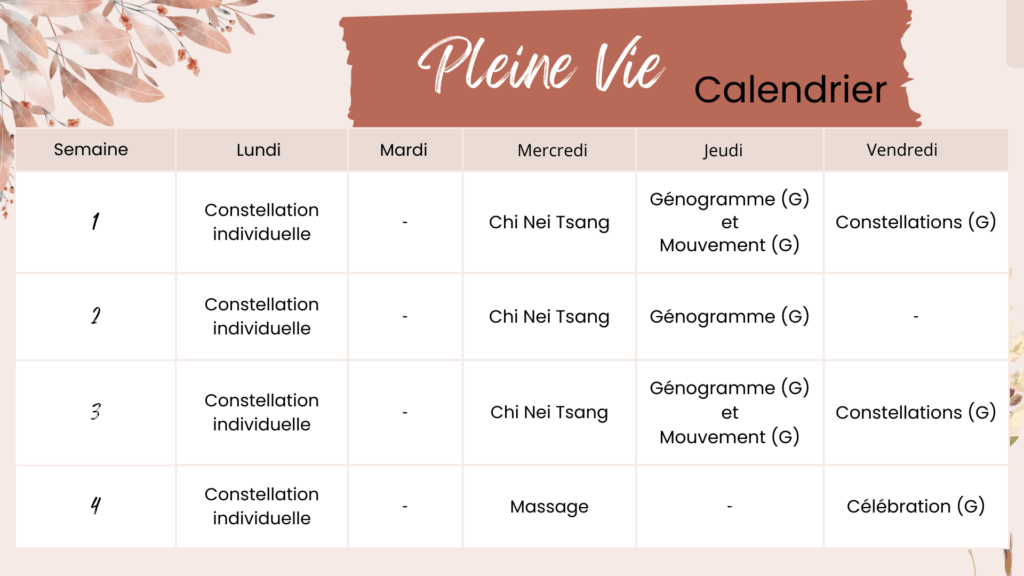Pleine Vie vous guide dans une transformation systémique : comprendre les mouvements internes et externes qui vous traversent, les interactions héritées du système familial, les traumatismes et les mécanismes relationnels qui génèrent stress et tensions.